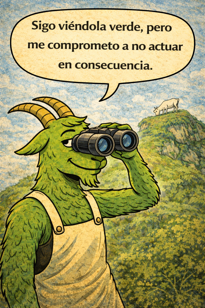 La cuestión es comprender por qué vemos la cabra verde (debido a la desensibilización y a la hiperactivación del impulso de repetición). Debe ser este conocimiento el que nos brinde, desde una perspectiva metacognitiva, la oportunidad de hacer las cosas de otra manera, aunque duela, aunque resulte molesto.